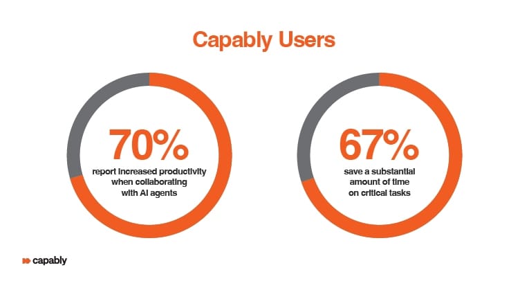 By independently managing routine tasks like reporting, data handling, and basic administrative tasks, as well as complex business processes, an autonomous agent frees up your team to focus on strategic, value-driven work. But it does not stop at task execution. These systems can handle entire workflow management on the fly—adjusting schedules, reallocating resources, and keeping operations running smoothly even as conditions shift. In fact, 70% of teams using Capably report increased productivity when collaborating with AI agents, and 67% of users save a vast amount of time on critical tasks (Chesnokova, 2025).